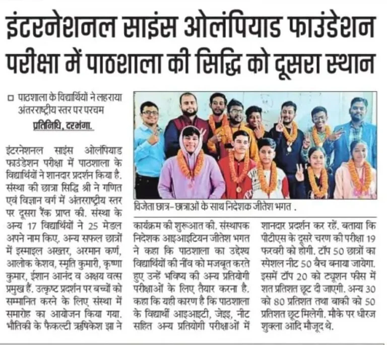 Paathshaala Institute is a one-stop destination for students preparing for JEE (Main + Advanced), Pre-Medical (NEET-UG), and Pre-Foundation programs (Classes VI to X), including NTSE, KVPY, and Olympiads.